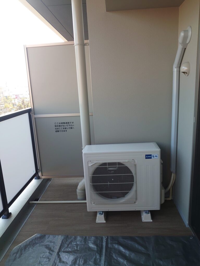 新築マンションにて、エアコン2台取り付けを依頼して頂きました。室内カバー屋外カバーを取り付け、見た目も綺麗に丁寧に施工致します。