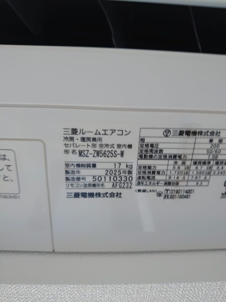 三菱電機18畳用MSZ-ZW5625S お掃除機能付きで唯一オススメしているメーカーになります。メンテナンス製に優れており、故障率も低いので、オススメです。次回三菱電機製のエアコンは、エアコンクリーニング割り引きにて対応致します。