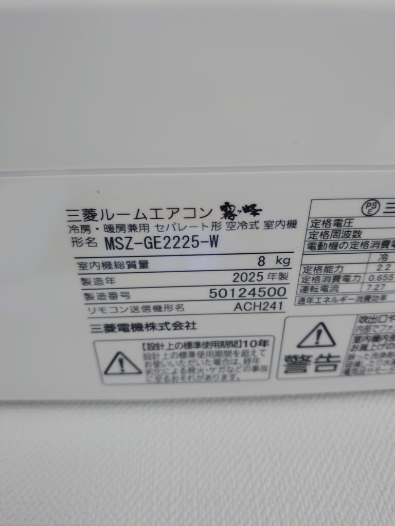三菱電機6畳用スタンダードモデル MSZGE2225を取り付け致しました。